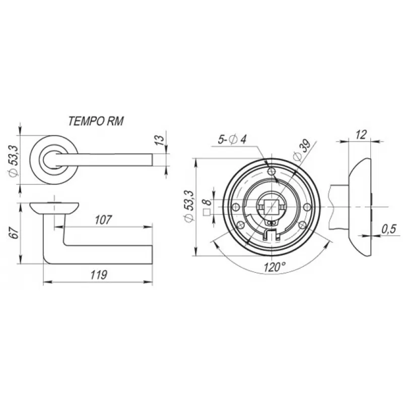 Ритм, линии, изгибы рождают новые формы. Безупречная эргономика и лаконичный дизайн делают дверные ручки серии RM (Ritmo) центральным элементом двери. Дверная ручка на раздельном основании Fuaro TEMPO RM на круглом основании подходит для установки на внутренние входные и межкомнатные двери. Максимальная масса двери 60 кг. Посадочные размеры оснований совместимы со всеми типами межкомнатных механизмов. Материал изготовления: ZAMAK (сплав цинка, алюминия, магния и меди). Гальваническое покрытие прошло тест на устойчивость к коррозии в соляном тумане - более 72 часов. Ресурс работы дверных ручек более 150 000 циклов открывания/закрывания, что гарантирует безотказную работу двери более чем на 10 лет. Стяжные винты в комплекте обеспечивают более прочное крепление на полотне двери, подходят для установки на двери толщиной 35-55 мм. Цвет: матовый никель/хром. В комплект входят: стяжные винты, соединительный квадрат 8x105 мм, саморезы, фиксирующие винты, шестигранник.