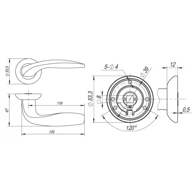 | Тип ручки | На круглой розетке |