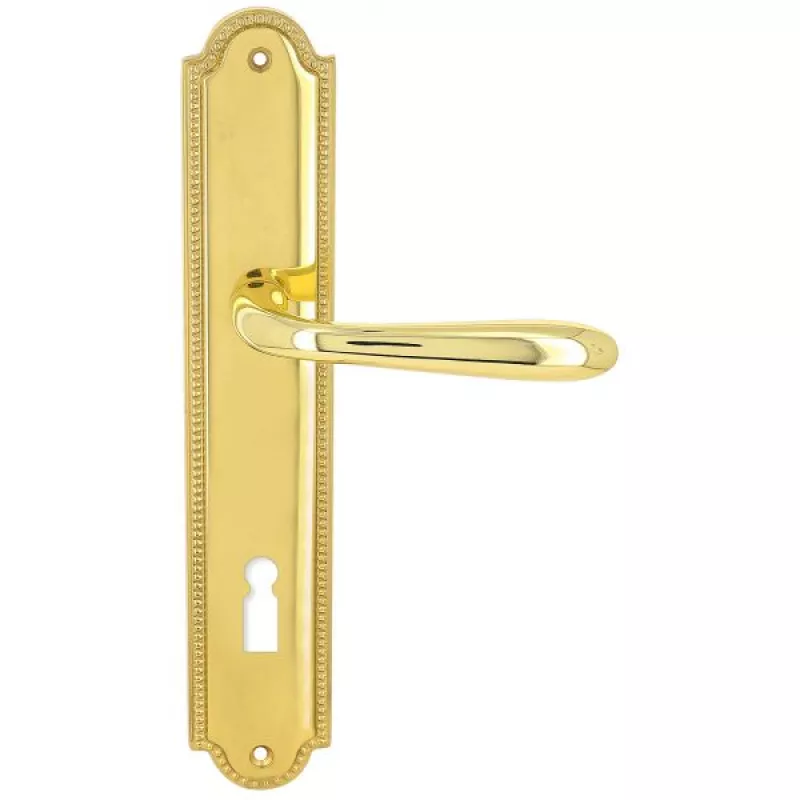 модель Дверная ручка Extreza "ALDO" (Альдо) 331 на планке PL03 полированная латунь F01 под кабинетный ключ KEY производителя Extreza удачно сочетает в себе изящество и, элегантный внешний вид. Модель окрашена в необычный оттенок – Полированное золото, однако не только это делает ее эксклюзивной. Дизайнерам удалось найти компромисс между достаточно простым исполнением ручки и аристократичным внешним видом. При весомых эстетичных достоинствах элемент фурнитуры демонстрирует еще и отличные прочностные характеристики. Данная фурнитура рассчитана на интенсивную эксплуатацию.