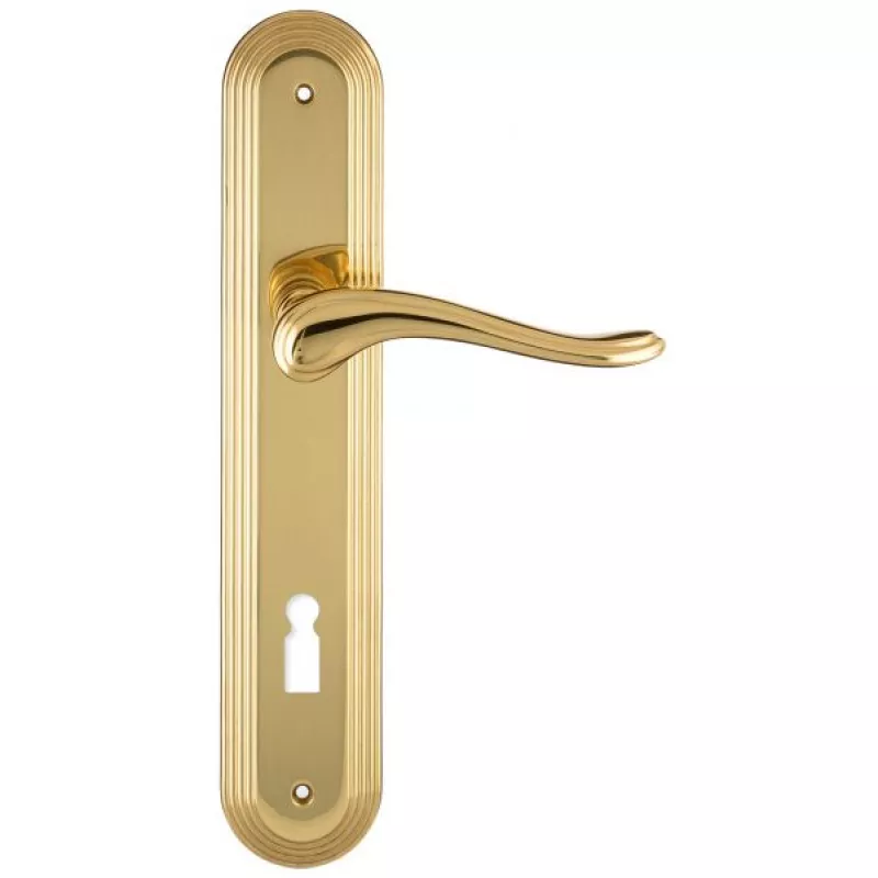 модель Дверная ручка Extreza "ARIANA" (Ариана) 333 на планке PL05 полированная латунь F01 под кабинетный ключ KEY производителя Extreza удачно сочетает в себе изящество и, элегантный внешний вид. Модель окрашена в необычный оттенок – Полированное золото, однако не только это делает ее эксклюзивной. Дизайнерам удалось найти компромисс между достаточно простым исполнением ручки и аристократичным внешним видом. При весомых эстетичных достоинствах элемент фурнитуры демонстрирует еще и отличные прочностные характеристики. Данная фурнитура рассчитана на интенсивную эксплуатацию.