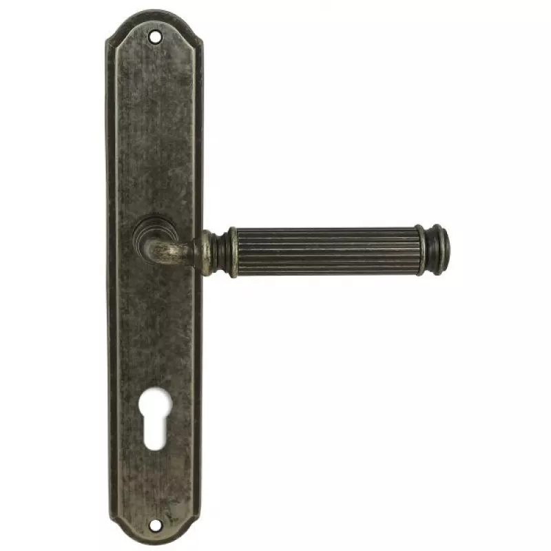 модель Дверная ручка Extreza "BENITO" (Бенито) 307 на планке PL01 античное серебро F45 под кабинетный ключ KEY производителя Extreza удачно сочетает в себе изящество и, элегантный внешний вид. Модель окрашена в необычный оттенок – Античное серебро, однако не только это делает ее эксклюзивной. Дизайнерам удалось найти компромисс между достаточно простым исполнением ручки и аристократичным внешним видом. При весомых эстетичных достоинствах элемент фурнитуры демонстрирует еще и отличные прочностные характеристики. Данная фурнитура рассчитана на интенсивную эксплуатацию.