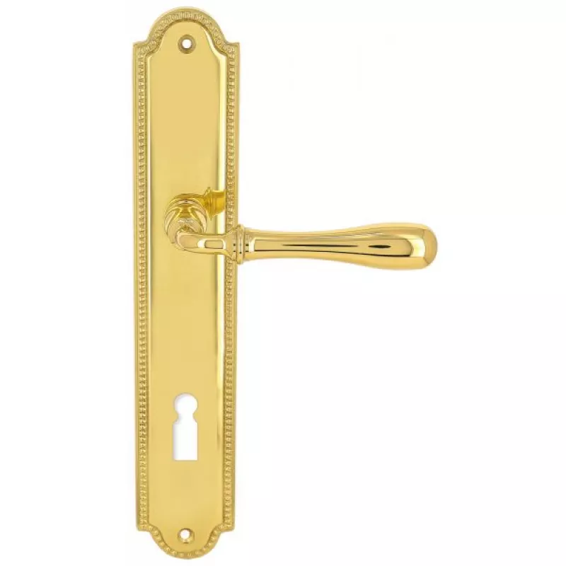 модель Дверная ручка Extreza "CARRERA" (Каррера) 321 на планке PL03 KEY полированная латунь F01 производителя Extreza удачно сочетает в себе изящество и, элегантный внешний вид. Модель окрашена в необычный оттенок – Полированное золото, однако не только это делает ее эксклюзивной. Дизайнерам удалось найти компромисс между достаточно простым исполнением ручки и аристократичным внешним видом. При весомых эстетичных достоинствах элемент фурнитуры демонстрирует еще и отличные прочностные характеристики. Данная фурнитура рассчитана на интенсивную эксплуатацию.