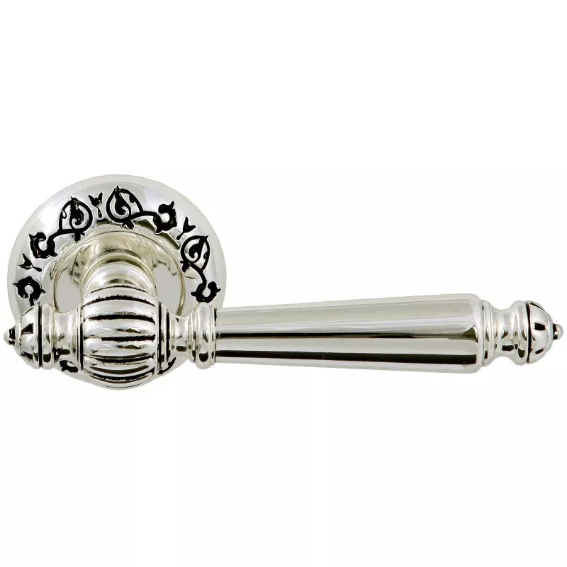 Корпус покрыт несколькими слоями гальванического покрытия. Оно усиливает защиту от коррозии и придает дверной ручке привлекательный вид. Цвет покрытия Натуральное серебро + черный