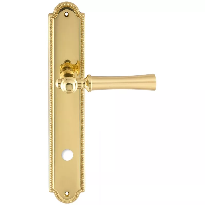модель Дверная ручка Extreza "DEZI" (Дези) 309 на планке PL03 WC полированная латунь F01 производителя Extreza удачно сочетает в себе изящество и, элегантный внешний вид. Модель окрашена в необычный оттенок – Полированное золото, однако не только это делает ее эксклюзивной. Дизайнерам удалось найти компромисс между достаточно простым исполнением ручки и аристократичным внешним видом. При весомых эстетичных достоинствах элемент фурнитуры демонстрирует еще и отличные прочностные характеристики. Данная фурнитура рассчитана на интенсивную эксплуатацию.