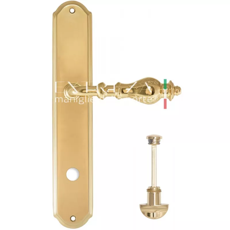 модель Дверная ручка Extreza "EVITA" (Эвита) 301 на планке PL01 полированная латунь F01 Ручка сантехническая завертка WC производителя Extreza удачно сочетает в себе изящество и, элегантный внешний вид. Модель окрашена в необычный оттенок – Полированное золото, однако не только это делает ее эксклюзивной. Дизайнерам удалось найти компромисс между достаточно простым исполнением ручки и аристократичным внешним видом. При весомых эстетичных достоинствах элемент фурнитуры демонстрирует еще и отличные прочностные характеристики. Данная фурнитура рассчитана на интенсивную эксплуатацию.