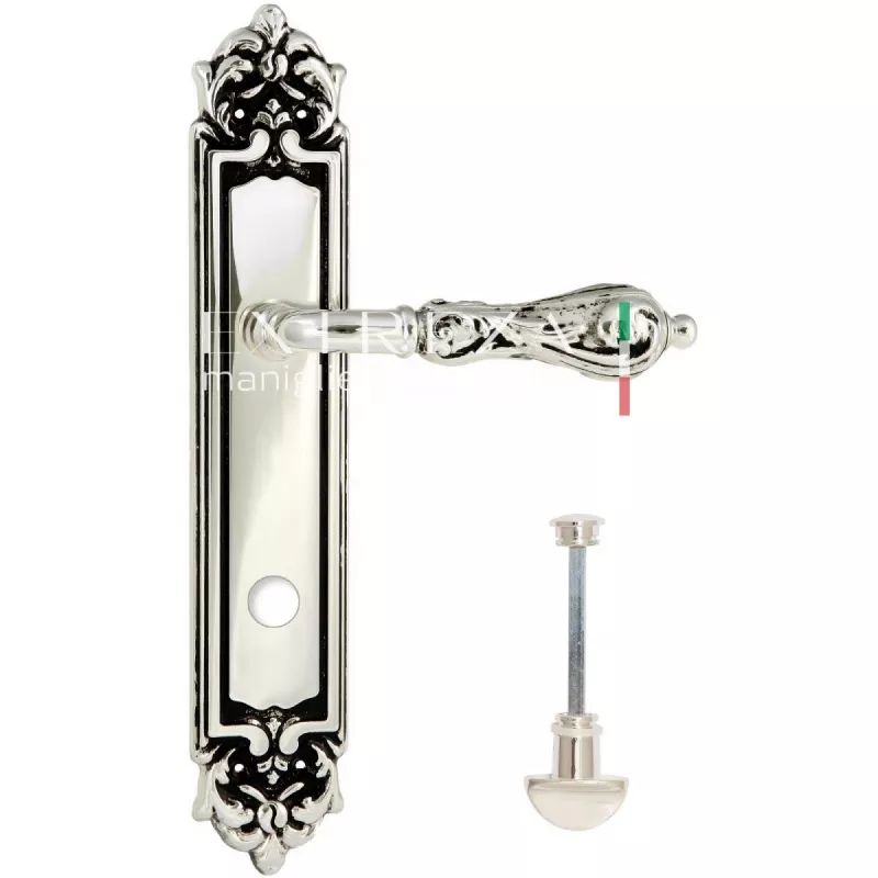 модель Дверная ручка Extreza "GRETA" (Грета) 302 на планке PL02 WC натуральное серебро + черный F24 производителя Extreza удачно сочетает в себе изящество и, элегантный внешний вид. Модель окрашена в необычный оттенок – Натуральное серебро + черный, однако не только это делает ее эксклюзивной. Дизайнерам удалось найти компромисс между достаточно простым исполнением ручки и аристократичным внешним видом. При весомых эстетичных достоинствах элемент фурнитуры демонстрирует еще и отличные прочностные характеристики. Данная фурнитура рассчитана на интенсивную эксплуатацию.