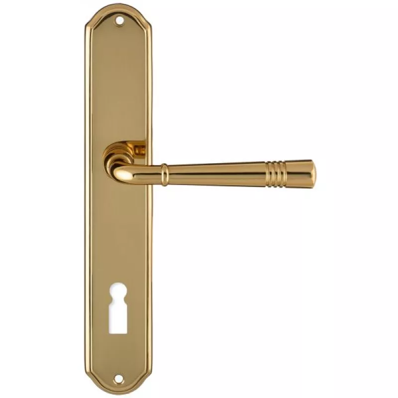модель Дверная ручка Extreza "GUSTO" 334 на планке PL01 полированная латунь F01 под кабинетный ключ KEY производителя Extreza удачно сочетает в себе изящество и, элегантный внешний вид. Модель окрашена в необычный оттенок – Полированное золото, однако не только это делает ее эксклюзивной. Дизайнерам удалось найти компромисс между достаточно простым исполнением ручки и аристократичным внешним видом. При весомых эстетичных достоинствах элемент фурнитуры демонстрирует еще и отличные прочностные характеристики. Данная фурнитура рассчитана на интенсивную эксплуатацию.