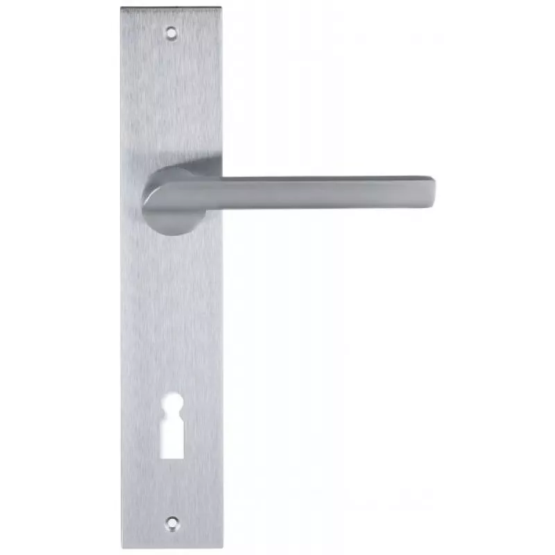 модель Дверная ручка Extreza Hi-Tech "SANTA" 128 на планке PL11 матовый хром F05 под кабинетный ключ KEY производителя Extreza удачно сочетает в себе изящество и, элегантный внешний вид. Модель окрашена в необычный оттенок – Матовый хром, однако не только это делает ее эксклюзивной. Дизайнерам удалось найти компромисс между достаточно простым исполнением ручки и аристократичным внешним видом. При весомых эстетичных достоинствах элемент фурнитуры демонстрирует еще и отличные прочностные характеристики. Данная фурнитура рассчитана на интенсивную эксплуатацию.