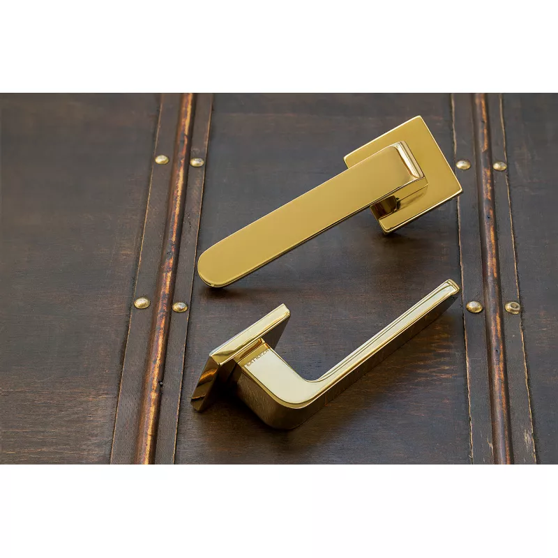 Корпус покрыт несколькими слоями гальванического покрытия. Оно усиливает защиту от коррозии и придает дверной ручке привлекательный вид. Цвет покрытия Полированное золото