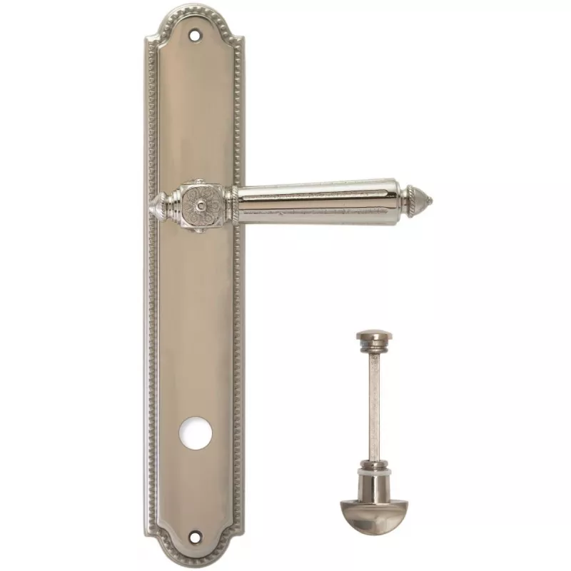 модель Дверная ручка Extreza "LEON" (Леон) 303 на планке PL03 WC полированный никель F21 производителя Extreza удачно сочетает в себе изящество и, элегантный внешний вид. Модель окрашена в необычный оттенок – Полированный никель, однако не только это делает ее эксклюзивной. Дизайнерам удалось найти компромисс между достаточно простым исполнением ручки и аристократичным внешним видом. При весомых эстетичных достоинствах элемент фурнитуры демонстрирует еще и отличные прочностные характеристики. Данная фурнитура рассчитана на интенсивную эксплуатацию.