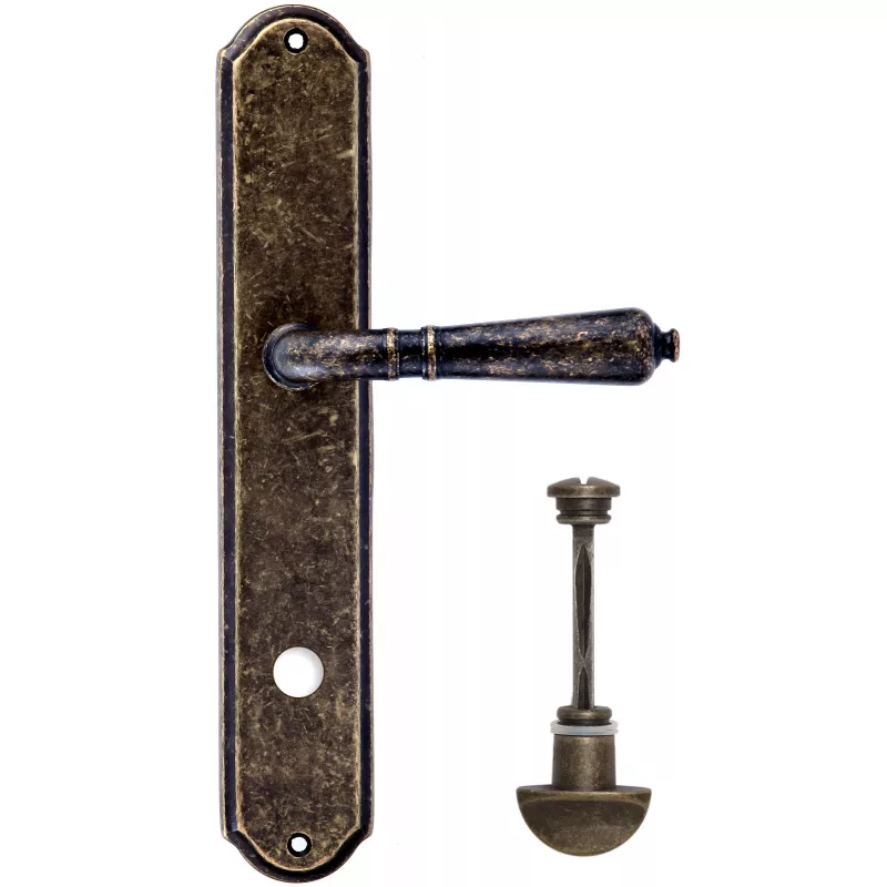 модель Дверная ручка Extreza "PETRA" (Петра) 304 на планке PL01 античная бронза F23 сантехническая завертка WC производителя Extreza удачно сочетает в себе изящество и, элегантный внешний вид. Модель окрашена в необычный оттенок – Античная бронза, однако не только это делает ее эксклюзивной. Дизайнерам удалось найти компромисс между достаточно простым исполнением ручки и аристократичным внешним видом. При весомых эстетичных достоинствах элемент фурнитуры демонстрирует еще и отличные прочностные характеристики. Данная фурнитура рассчитана на интенсивную эксплуатацию.