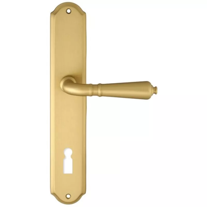 модель Дверная ручка Extreza "PETRA" (Петра) 304 на планке PL01 матовая латунь F02 под кабинетный ключ KEY производителя Extreza удачно сочетает в себе изящество и, элегантный внешний вид. Модель окрашена в необычный оттенок – Матовое золото, однако не только это делает ее эксклюзивной. Дизайнерам удалось найти компромисс между достаточно простым исполнением ручки и аристократичным внешним видом. При весомых эстетичных достоинствах элемент фурнитуры демонстрирует еще и отличные прочностные характеристики. Данная фурнитура рассчитана на интенсивную эксплуатацию.