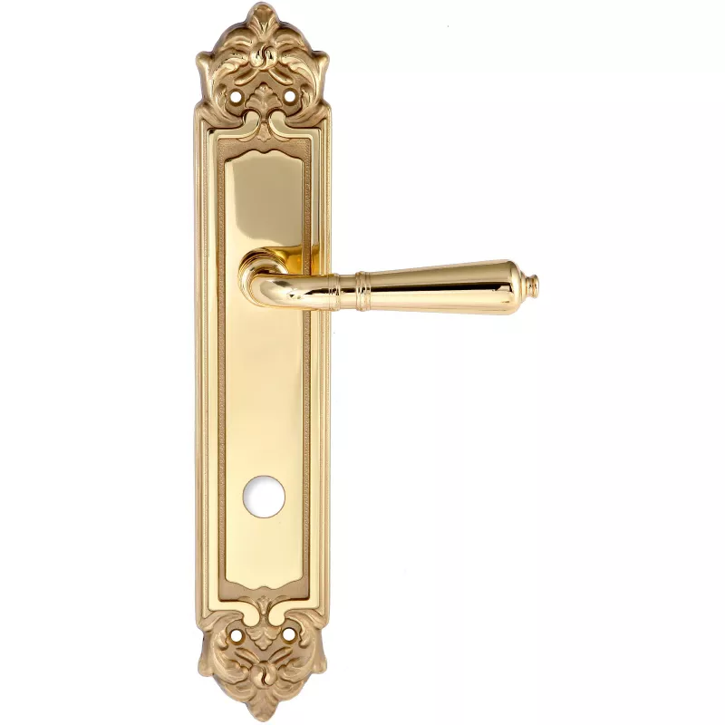 модель Дверная ручка Extreza "PETRA" (Петра) 304 на планке PL02 WC полированная латунь F01 производителя Extreza удачно сочетает в себе изящество и, элегантный внешний вид. Модель окрашена в необычный оттенок – Полированное золото, однако не только это делает ее эксклюзивной. Дизайнерам удалось найти компромисс между достаточно простым исполнением ручки и аристократичным внешним видом. При весомых эстетичных достоинствах элемент фурнитуры демонстрирует еще и отличные прочностные характеристики. Данная фурнитура рассчитана на интенсивную эксплуатацию.