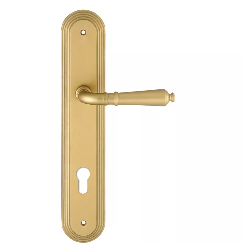 модель Дверная ручка Extreza "PETRA" (Петра) 304 на планке PL05 матовая латунь F02 под цилиндровый механизм CYL производителя Extreza удачно сочетает в себе изящество и, элегантный внешний вид. Модель окрашена в необычный оттенок – Матовое золото, однако не только это делает ее эксклюзивной. Дизайнерам удалось найти компромисс между достаточно простым исполнением ручки и аристократичным внешним видом. При весомых эстетичных достоинствах элемент фурнитуры демонстрирует еще и отличные прочностные характеристики. Данная фурнитура рассчитана на интенсивную эксплуатацию.
