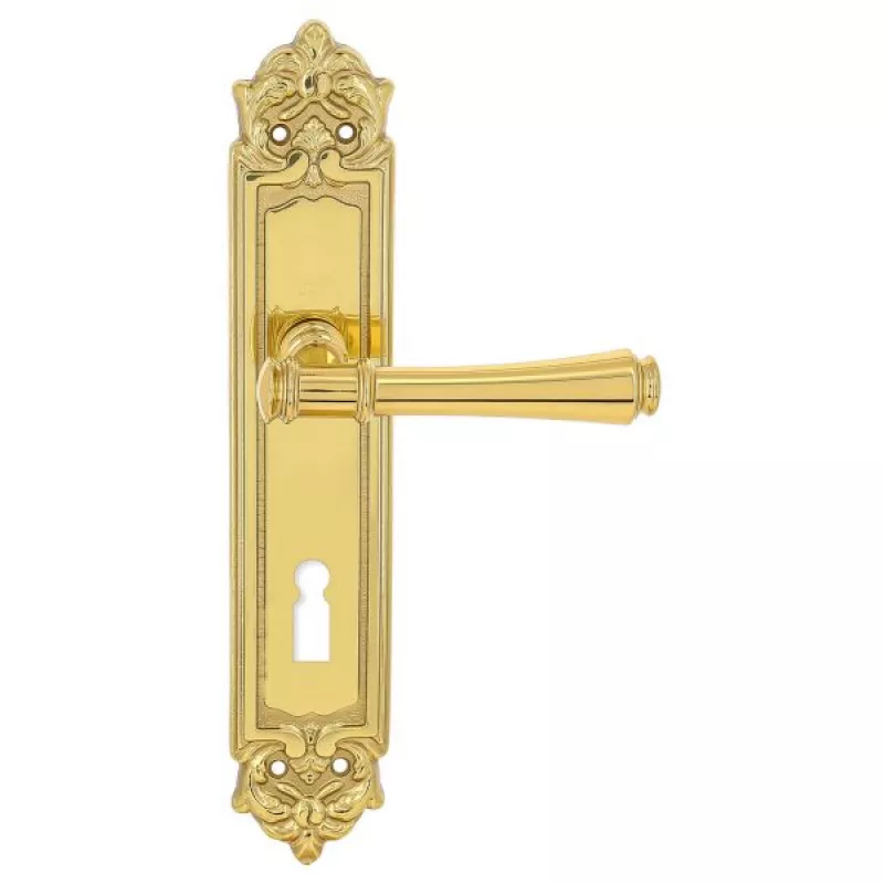модель Дверная ручка Extreza "PIERO" (Пиеро) 326 на планке PL02 KEY полированная латунь F01 производителя Extreza удачно сочетает в себе изящество и, элегантный внешний вид. Модель окрашена в необычный оттенок – Полированное золото, однако не только это делает ее эксклюзивной. Дизайнерам удалось найти компромисс между достаточно простым исполнением ручки и аристократичным внешним видом. При весомых эстетичных достоинствах элемент фурнитуры демонстрирует еще и отличные прочностные характеристики. Данная фурнитура рассчитана на интенсивную эксплуатацию.