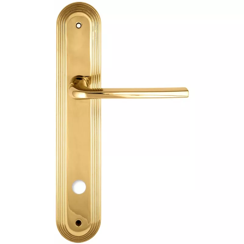 модель Дверная ручка Extreza "TERNI" (Терни) 320 на планке PL05 WC полированная латунь F01 производителя Extreza удачно сочетает в себе изящество и, элегантный внешний вид. Модель окрашена в необычный оттенок – Полированное золото, однако не только это делает ее эксклюзивной. Дизайнерам удалось найти компромисс между достаточно простым исполнением ручки и аристократичным внешним видом. При весомых эстетичных достоинствах элемент фурнитуры демонстрирует еще и отличные прочностные характеристики. Данная фурнитура рассчитана на интенсивную эксплуатацию.