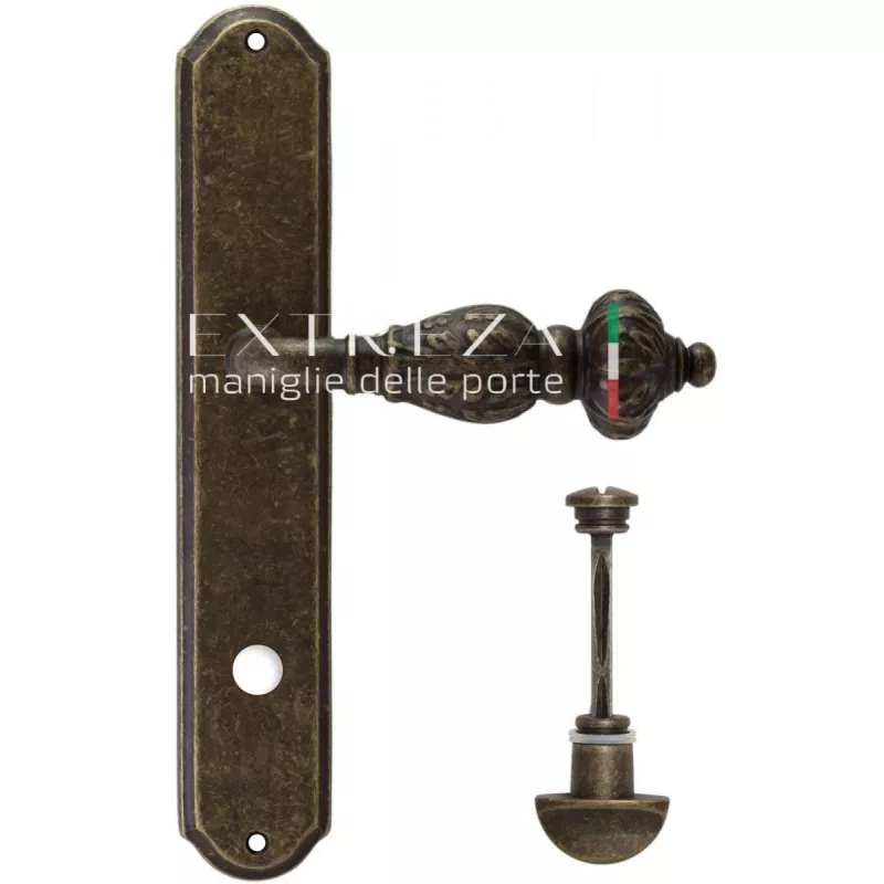 Дверная ручка Extreza "TESLA" (Тесла) 315 на планке PL01 WC античная бронза F23.