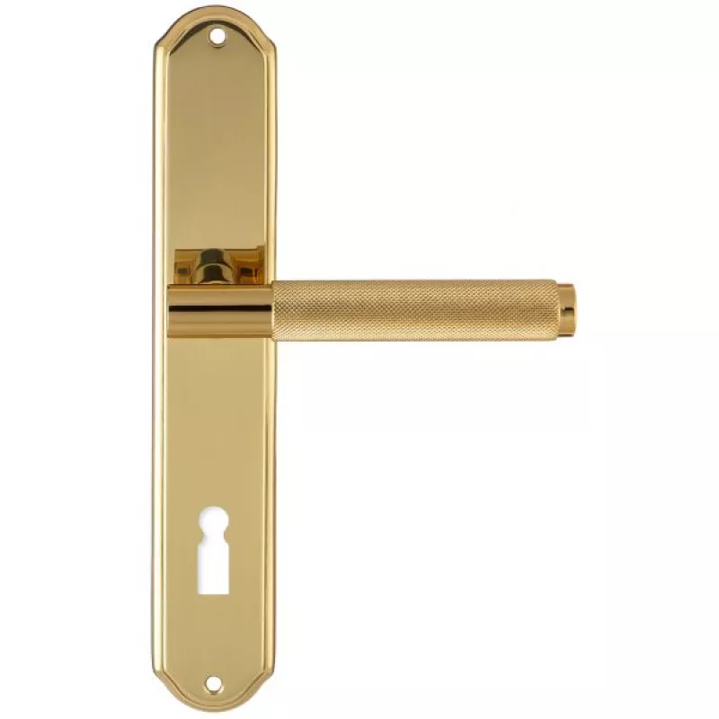 модель Дверная ручка Extreza "TUBA" 126 на планке PL01 полированная латунь F01 под кабинетный ключ KEY производителя Extreza удачно сочетает в себе изящество и, элегантный внешний вид. Модель окрашена в необычный оттенок – Полированное золото, однако не только это делает ее эксклюзивной. Дизайнерам удалось найти компромисс между достаточно простым исполнением ручки и аристократичным внешним видом. При весомых эстетичных достоинствах элемент фурнитуры демонстрирует еще и отличные прочностные характеристики. Данная фурнитура рассчитана на интенсивную эксплуатацию.