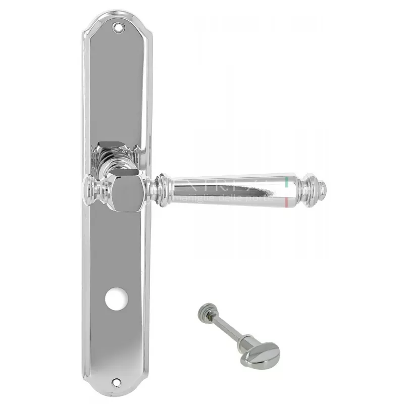 модель Дверная ручка Extreza "VERONIKA" (Вероника) 325 на планке PL01 WC полированный хром F04 производителя Extreza удачно сочетает в себе изящество и, элегантный внешний вид. Модель окрашена в необычный оттенок – Полированный хром, однако не только это делает ее эксклюзивной. Дизайнерам удалось найти компромисс между достаточно простым исполнением ручки и аристократичным внешним видом. При весомых эстетичных достоинствах элемент фурнитуры демонстрирует еще и отличные прочностные характеристики. Данная фурнитура рассчитана на интенсивную эксплуатацию.