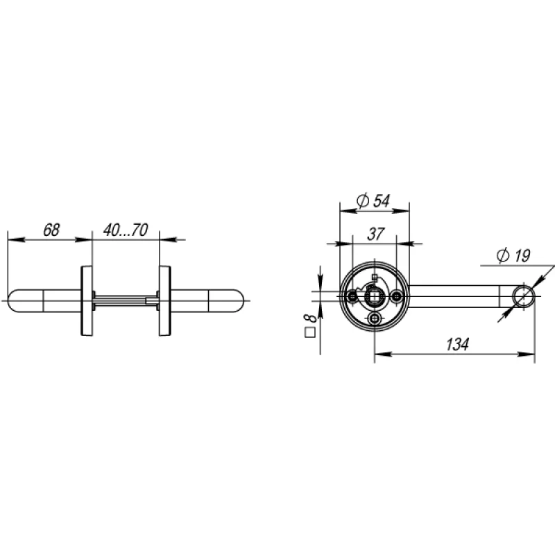 | Толщина двери | Для любой толщины двери |