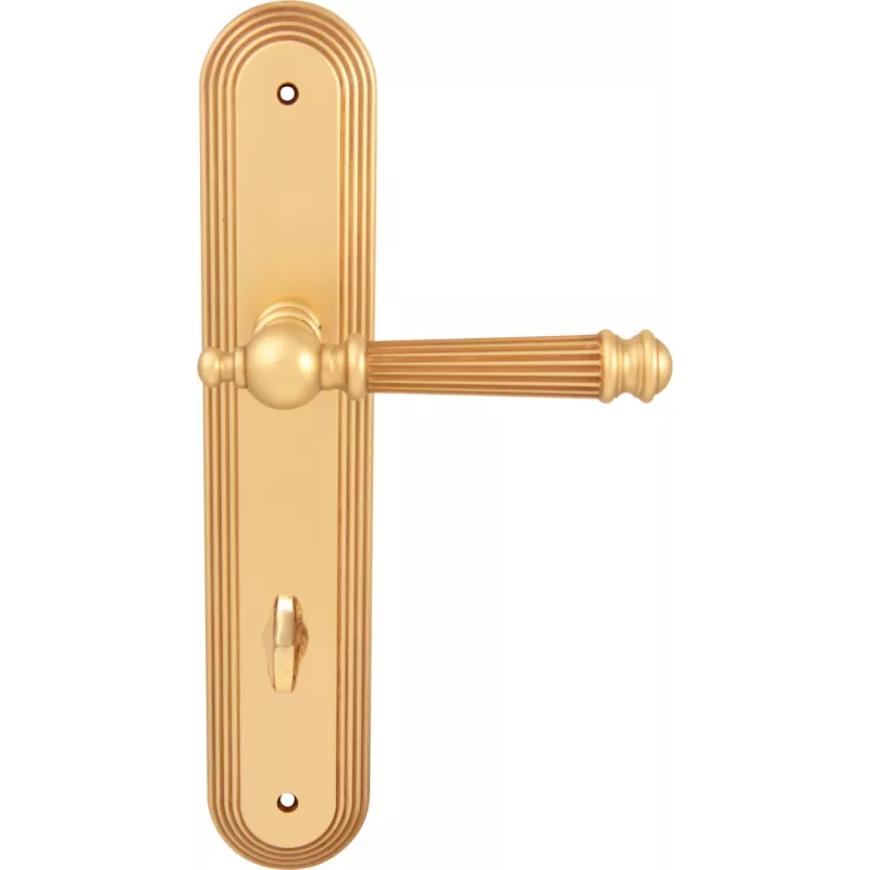 Продукция MELODIA превосходного качества, удачно сочетает в себе изящество, элегантный внешний вид и доступную стоимость. Данная Ручки на планке исполнена в цвете золото французское, однако не только это делает ее эксклюзивной. Коллекция Melodia, производителя Fadex удачно сочетает в себе изящество, элегантный внешний вид. Ручки на планке MELODIA 102 Veronica Wc на пластине Demetra Французское золото обладают аристократичным внешним видом. При весомых эстетичных достоинствах элемент фурнитуры демонстрирует еще и отличные прочностные характеристики. Материал Латунь рассчитан на интенсивную эксплуатацию. Дверная фурнитура гармонично дополняет собой композицию. Предназначено для установки на межкомнатные и входные двери.