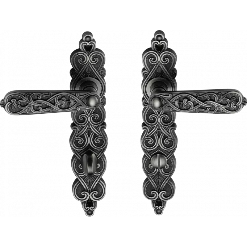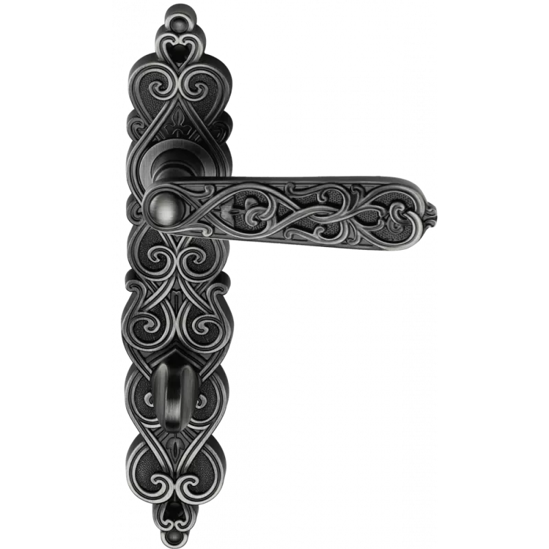Дверная ручка на планке GENESIS ARABESCO фиксатор WC черненое серебро.