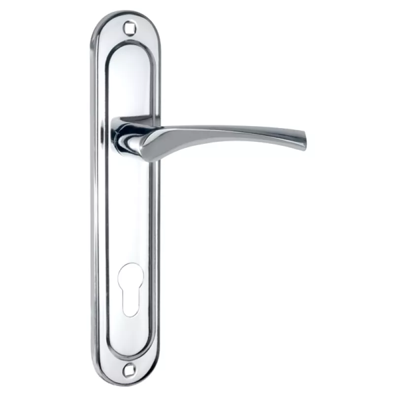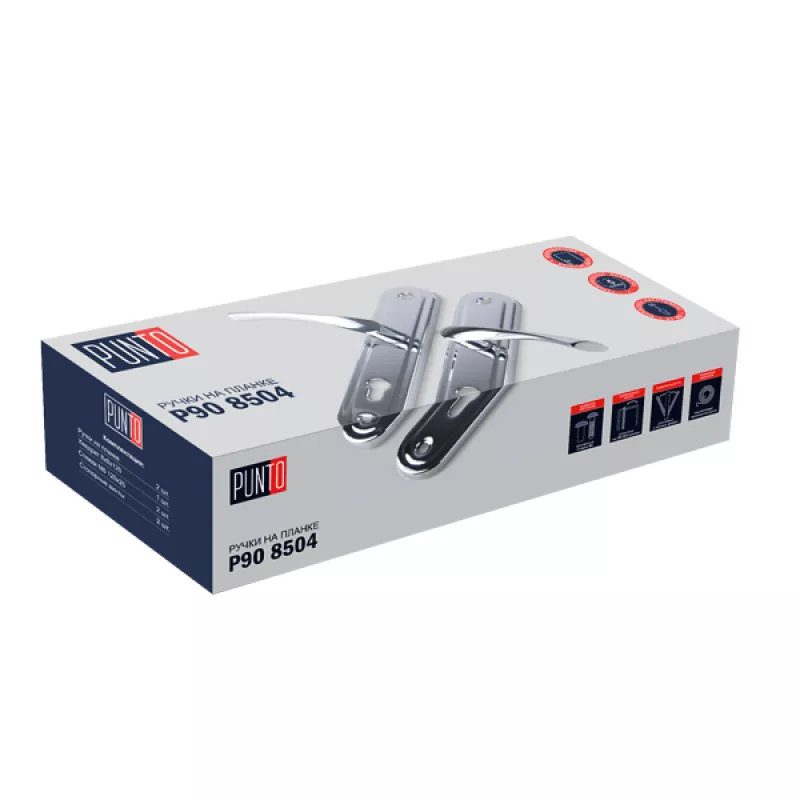Ручки на планке Punto серии P90 предназначены для установки в межкомнатные и входные двери, используются для комплектации корпусов цилиндровых замков с межосевым расстоянием 85 мм. Для надежного крепления в комплектацию входят усиленные стяжные винты. Ручка выполнена из алюминия, планка из стали толщиной 1,5 мм. Гальваническое покрытие прошло тест на устойчивость к коррозии в соляном тумане и соответствует высшему 4 классу по ГОСТ . Ресурс работы ручек более 200 000 циклов открывания/закрывания. Комплектация: ручки на планке (2шт.), квадрат, стяжные винты (2шт.), шпильки для ручек (2шт.). Цвет: хром.