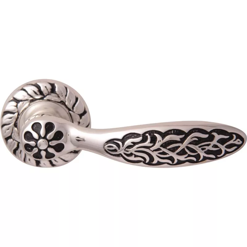 Ручки на розетке Дверная ручка на розетке 1065 Shamira 60 мм Серебро 925 + черный.