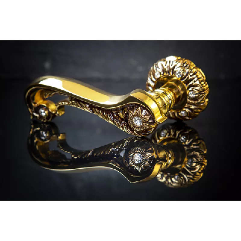 Ручки на розетке Дверная ручка на розетке 1115 Jade NEW 60 mm Золото 24К + коричневый + сваровски + 6S.