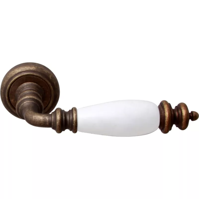 Ручки на розетке Дверная ручка на розетке 473 V Siena Античная бронза + керамика белая.