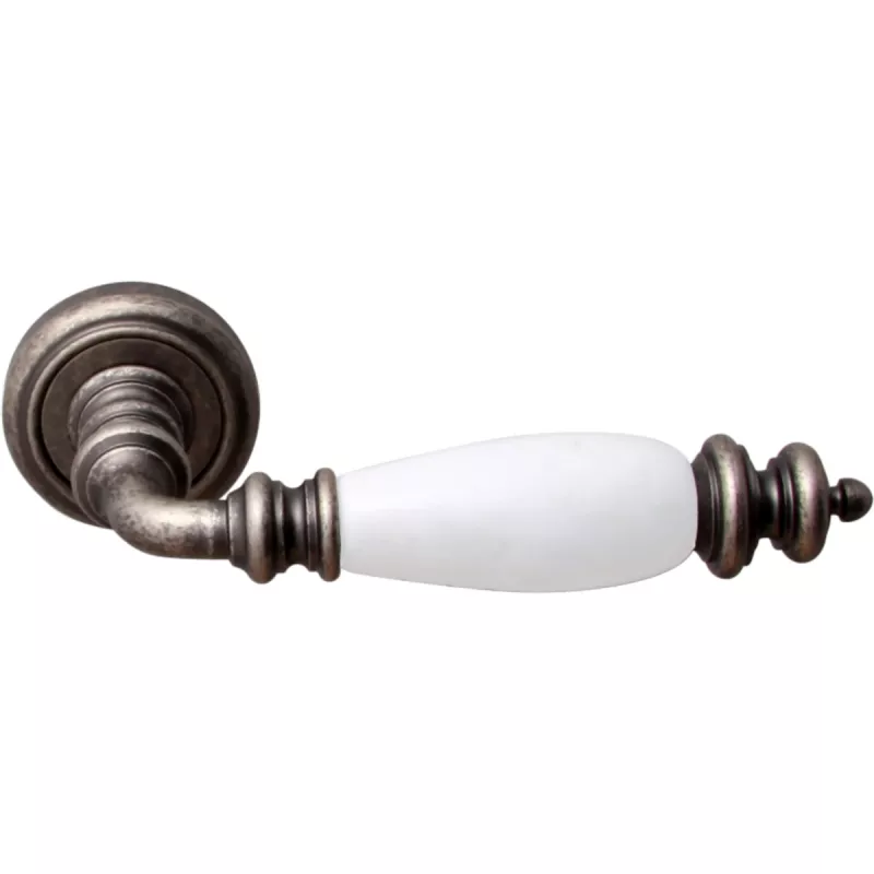 Ручки на розетке Дверная ручка на розетке 473 V Siena Античное серебро + керамика белая.