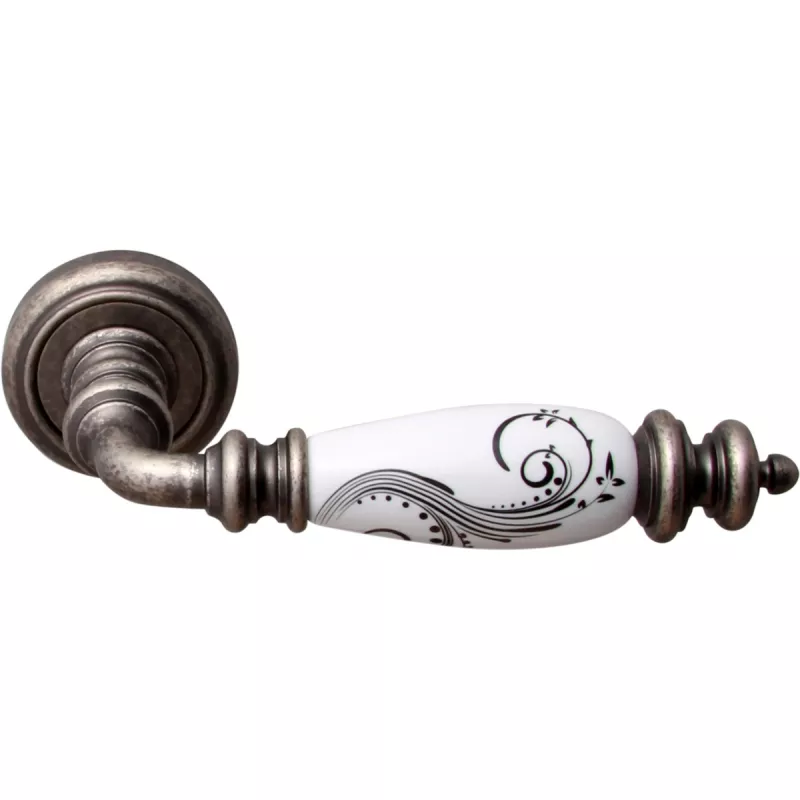 Ручки на розетке Дверная ручка на розетке 473 V Siena Античное серебро + керамика декор.