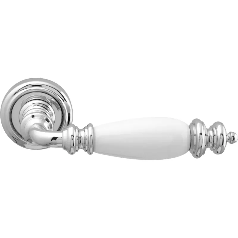 Ручки на розетке Дверная ручка на розетке 473 V Siena Полированный хром + керамика белая.