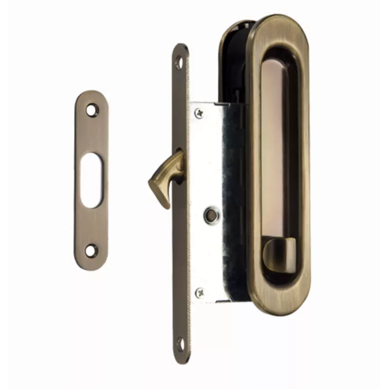 Ручка для раздвижной двери с механизмом, овал, с заверткой, цвет бронза