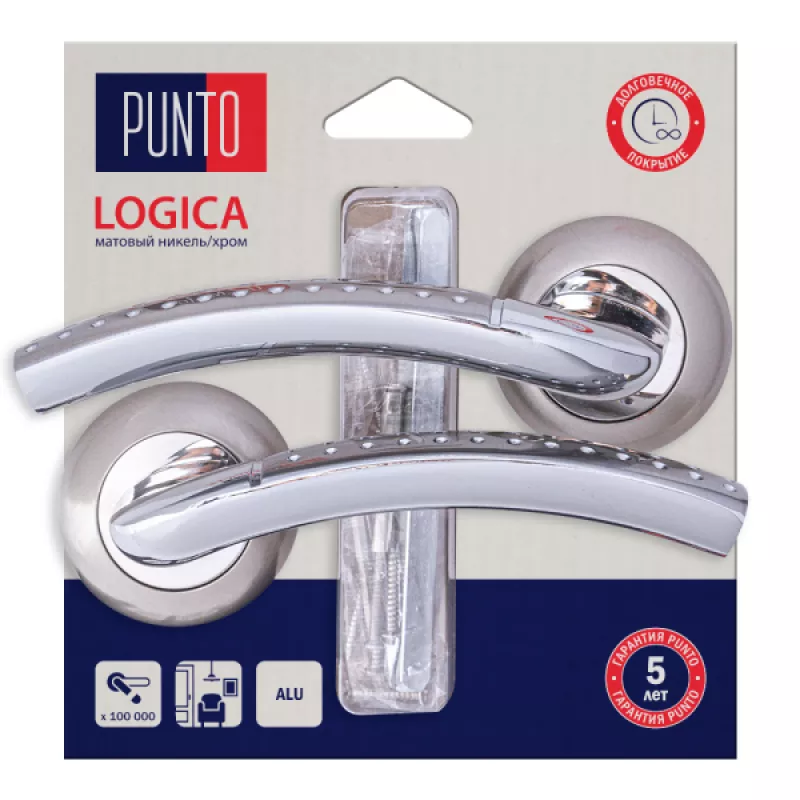Теги: 45595, Ручки дверные на раздельном основании, PUNTO, TL, матовый никель/хром, ZAMAK, 6975519810737