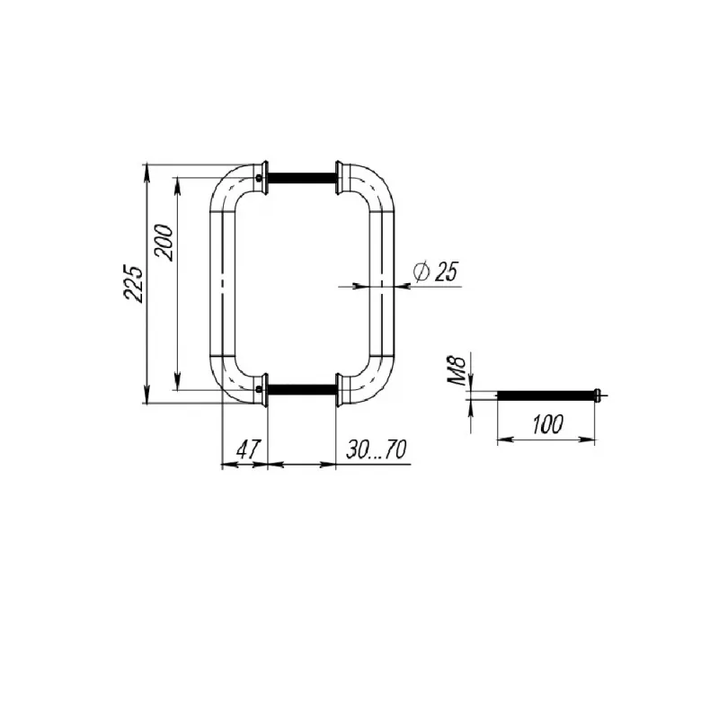 Дверная Ручка-скоба PH-21-25/200-INOX из нержавеющей стали предназначена для установки на внутренние металлические, профильные, деревянные и стеклянные двери, на технические двери с одной или с двух сторон.