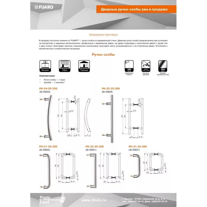 Дверная Ручка-скоба PH-21-25/200-INOX из нержавеющей стали предназначены для установки на внутренние и наружные металлические, профильные и