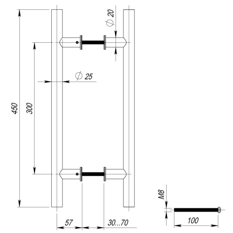 Дверная Ручка-скоба PH-22-25/300-INOX из нержавеющей стали предназначены для установки на внутренние и наружные металлические, профильные и