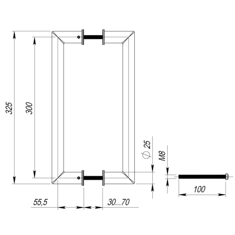 Дверная Ручка-скоба PH-23-25/300-INOX из нержавеющей стали предназначены для установки на внутренние и наружные металлические, профильные и