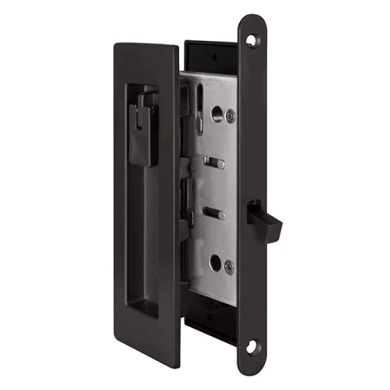 В комплект входит: ручки для раздвижных дверей, пластиковый вкладыш, торцевой захват, защелка для раздвижных дверей, ответная планка, крепежный комплект, шаблон для монтажа. Материал изготовления - цинковый сплав (ZAMAK). Минимальная толщина двери 38 мм.