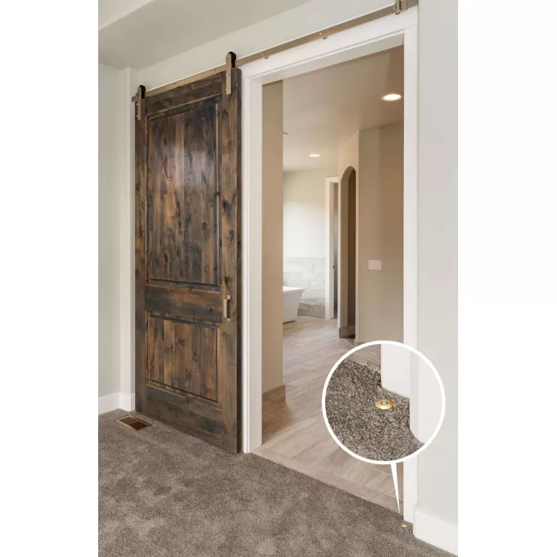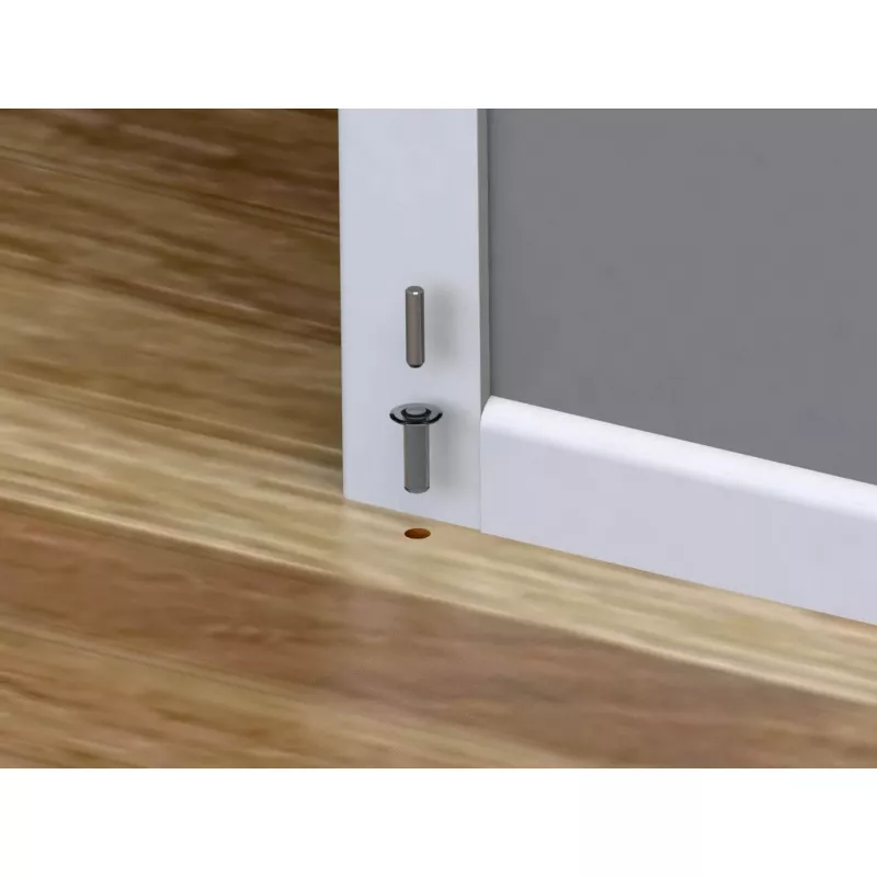 Стопор состоит из редкоземельного неодимового магнита, втулки из полимера или металла, металлического штифта с полимерным наконечником и пластины, которая фиксирует магнит в дверном полотне.