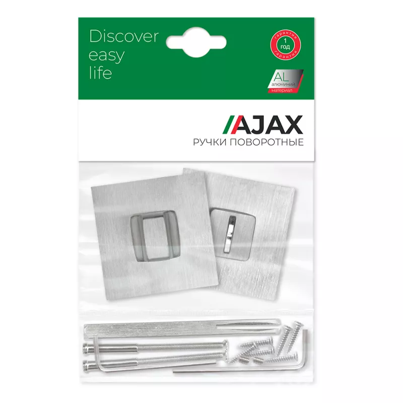 Поворотная ручка на тонком квадратном основании Ajax BK6 серии JS подходит для установки на внутренние входные и межкомнатные двери. Материал изготовления:алюминий. Гальваническое покрытие прошло тест на устойчивость к коррозии в соляном тумане и соответствует 1 классу ГОСТ. Толщина основания: 6 мм. Цвет: сатинированный хром. В комплект входят: соединительный квадрат 6x80 мм, винты.