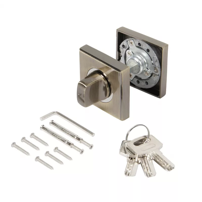 Ручка поворотная с фиксацией ключом Ajax BK6.FIX на квадратном основании серии JK предназначена для установки на межкомнатные двери. Используется вместе с задвижкой, защелкой для двухстороннего закрывания дверей. Запирание с внешней стороны производится на ключ, с внутренней - на поворотную ручку. Обратите внимание! При установке необходимо. чтобы квадрат поворотника был выставлен в среднее положение относительно цилиндрового механизма, то есть имел запас хода в обе стороны 90 градусов. Основной материал изготовления: замак. Материал изготовления цилиндрового механизма - латунь. Гальваническое покрытие прошло тест на устойчивость к коррозии в соляном тумане и соответствует 1 классу ГОСТ. Цвет: бронза. В комплект входят: ручка-поворотная с соединительным квадратом 6x60 мм, цилиндр, 3 перфорированных ключа, комплект крепежа. Упаковка: блистер. Гарантия: 1 год.