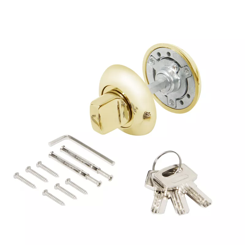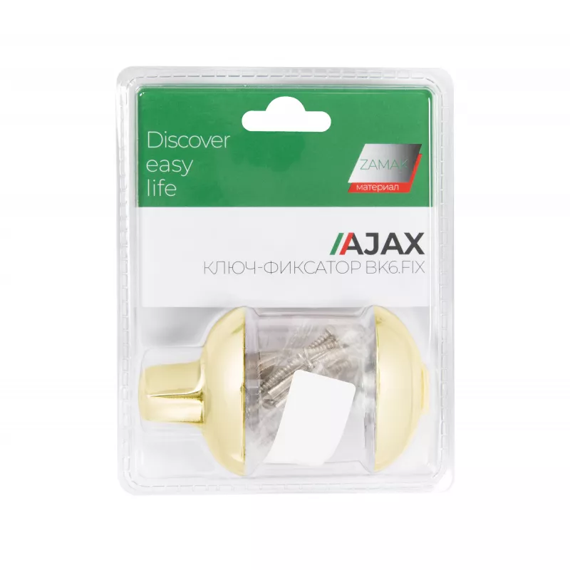 Ручка поворотная с фиксацией ключом Ajax BK6.FIX на квадратном основании серии JR предназначена для установки на межкомнатные двери. Используется вместе с задвижкой, защелкой для двухстороннего закрывания дверей. Запирание с внешней стороны производится на ключ, с внутренней - на поворотную ручку. Обратите внимание! При установке необходимо. чтобы квадрат поворотника был выставлен в среднее положение относительно цилиндрового механизма, то есть имел запас хода в обе стороны 90 градусов. Основной материал изготовления: замак. Материал изготовления цилиндрового механизма - латунь. Гальваническое покрытие прошло тест на устойчивость к коррозии в соляном тумане и соответствует 1 классу ГОСТ. Цвет: золото. В комплект входят: ручка-поворотная с соединительным квадратом 6x60 мм, цилиндр, 3 перфорированных ключа, комплект крепежа. Упаковка: блистер. Гарантия: 1 год.