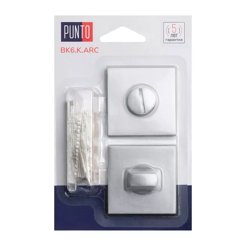 Поворотные ручки на квадратном основании Punto BK6 серии ARC подходят для установки на внутренние входные и межкомнатные двери. Материал изготовления: ZAMAK (сплав цинка, алюминия, магния и меди). Гальваническое покрытие прошло тест на устойчивость к коррозии в соляном тумане. Цвет: сатинированный хром. В комплект входят: соединительный квадрат 6x80 мм, винты, стяжные винты.