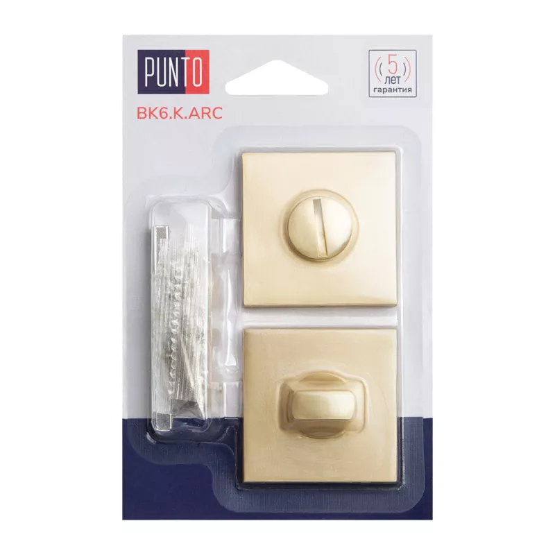 Поворотные ручки на квадратном основании Punto BK6 серии ARC подходят для установки на внутренние входные и межкомнатные двери. Материал изготовления: ZAMAK (сплав цинка, алюминия, магния и меди). Гальваническое покрытие прошло тест на устойчивость к коррозии в соляном тумане. Цвет: сатинированное золото. В комплект входят: соединительный квадрат 6x80 мм, винты, стяжные винты.