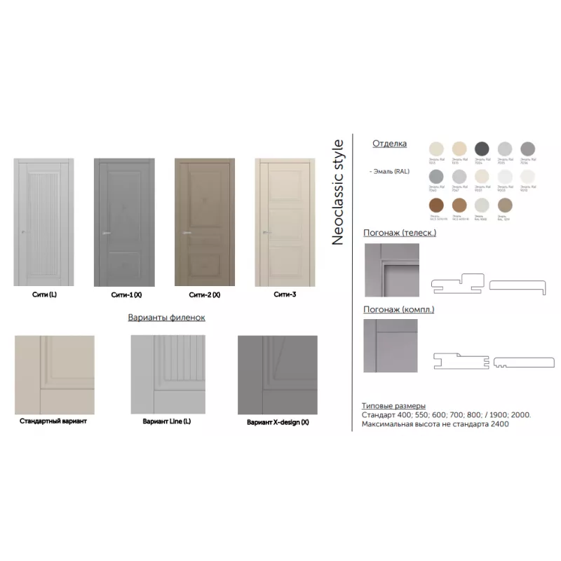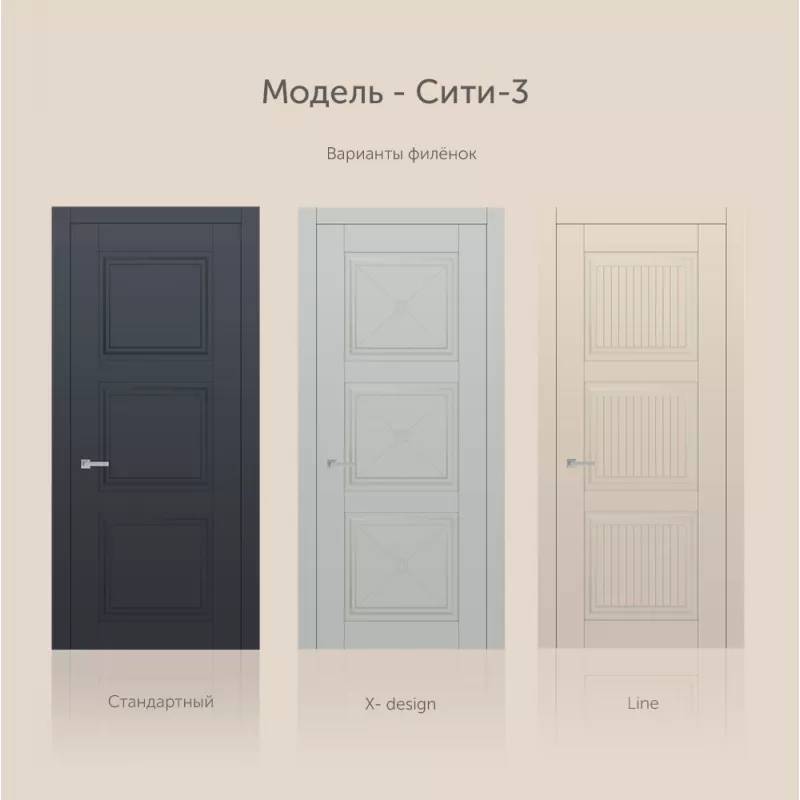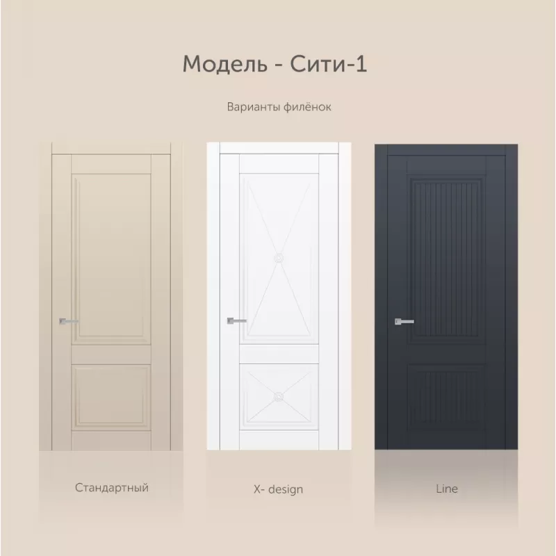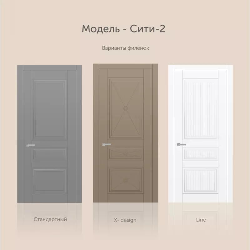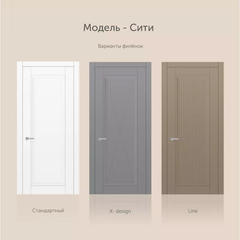 Новая коллекция в неоклассическом стиле создает особую атмосферу, которой присущи элегантные сочетания линий и деталей. Дизайн моделей в коллекции СИТИ, обладают стилистическим характером и высочайшим технологическим design исполнением. Полотна изготавливаются по сборной технологии.