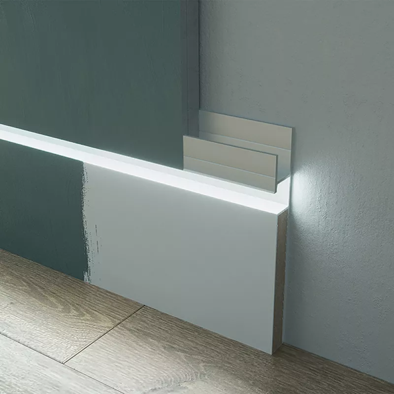 Скрытый плинтус / Теневой профиль Ликорн под свет (С-02.2) с грунтованной вставкой под покраску (К-27.70); Скрытый плинтус / Теневой профиль Ликорн с грунтованной вставкой МДФ для покраски под световую ленту.; Скрытый плинтус практичен: мебель ставится вплотную к стене.; Освещение добавляем настроение и создаёт атмосферу.; Единственно правильный вариант для скрытых дверей.; Алюминиевый профиль имеет готовый канал для установки световой ленты (световая лента в комплект не входит).; МДФ вставка грунтована и готова для покраски на объекте после установки.; Поверхность не требует шлифовки и имеет максимально ровную поверхность с нанесённым праймером.; Праймер гарантирует адгезию с любыми лакокрасочными материалами и при любом способе нанесения.; Скачать:; Презентация «Скрытый плинтус и Теневой профиль Ликорн» (PDF-файл, 17 МБ); Наши менеджеры всегда готовы ответить на Ваши вопросы.; Получить консультацию можно по телефону: ; 7(499)990-4987