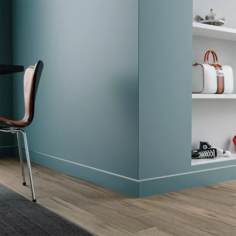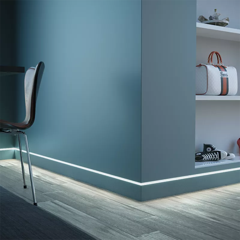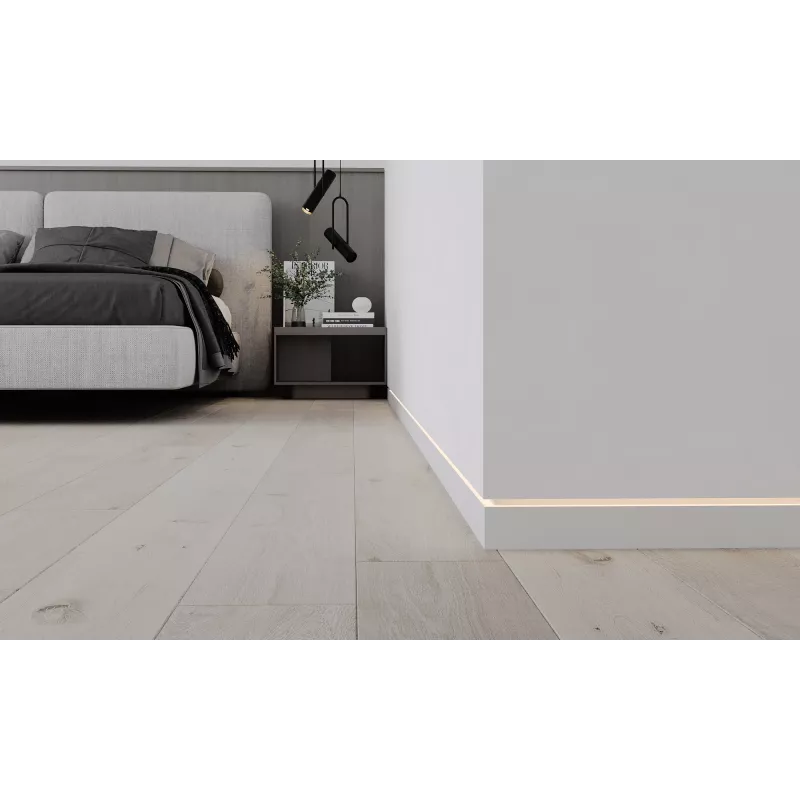 Скрытый плинтус / Теневой профиль Ликорн с грунтованной вставкой МДФ для покраски под световую ленту.