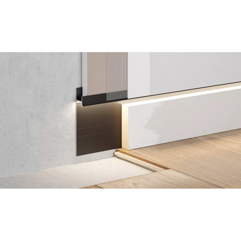 Теги: ЛИКОРН, С-02.2 под свет со вставкой К-27.70, грунт, Скрытый плинтус / Теневой профиль